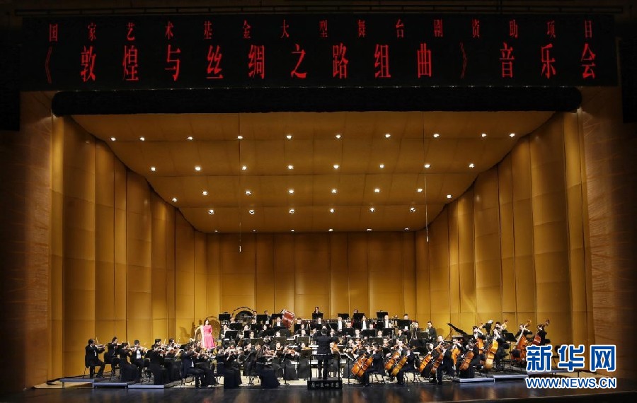 《敦煌與絲綢之路組曲》由俄羅斯作曲家布列沙克·維克多·瓦西里耶維奇創(chuàng)作,分為《朝圣敦煌》《祝福綠洲》《莫高圣禮》《藝術(shù)圣殿》《絲路情歌》《古道回聲》《海上絲路》《力與速度》和《和平萬歲》九個樂章。組曲追溯古代絲綢之路的繁榮昌盛,歌頌“一帶一路”倡議背景下今日絲綢之路的和平崛起,暢想未來絲綢之路的輝煌盛景。新華網(wǎng)發(fā)(薛強 攝)
