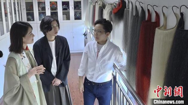 京劇名家王珮瑜帶領(lǐng)兩位主播走進上海京劇院。 康玉湛 攝