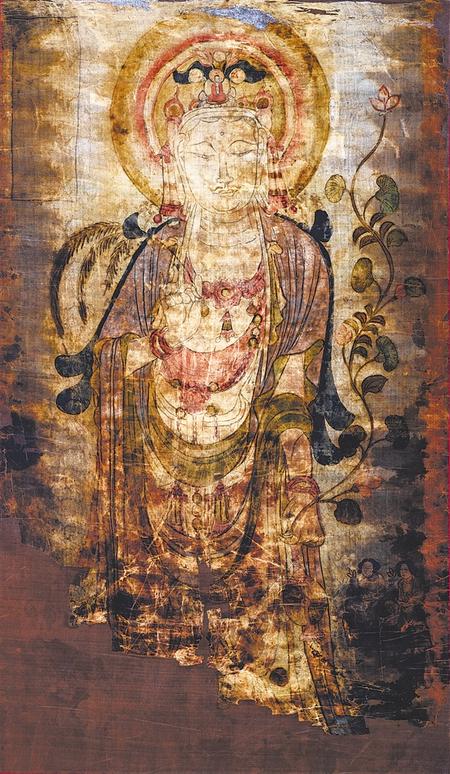 《到世界找敦煌——敦煌流散海外文物復(fù)制展》主要展出的文物為流散于英國(guó)不列顛博物館、法國(guó)吉美博物館、法國(guó)國(guó)家圖書(shū)館等海外收藏機(jī)構(gòu)珍藏莫高窟藏經(jīng)洞內(nèi)的文物復(fù)制品,展品均是按文物原比例復(fù)制,主要內(nèi)容為敦煌藏經(jīng)洞流失的南北朝、隋唐、五代、北宋等歷代絹畫(huà)、紙畫(huà)、麻布畫(huà)和經(jīng)卷等各類(lèi)文物130余幅。展品除紙、絹、麻布等材質(zhì)未做還原處理外,其尺寸、色彩、完殘程度均是按文物原件高清采擷真實(shí)現(xiàn)狀呈現(xiàn)在觀眾面前。一件件質(zhì)感厚重、色彩沉穩(wěn)的藝術(shù)品,從宗教內(nèi)容闡釋?zhuān)罱K卻回歸于藝術(shù)殿堂,描繪出真、善、美兼?zhèn)涞睦硐朊篮弥场?/p>