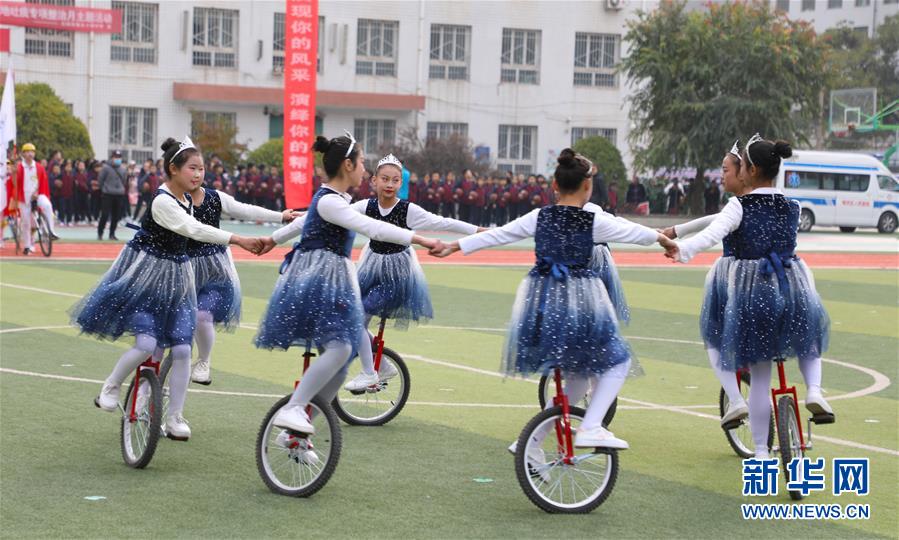 11月4日,蘭州市伏龍坪小學(xué)學(xué)生在活動現(xiàn)場進(jìn)行獨輪車表演。新華社記者 張智敏 攝