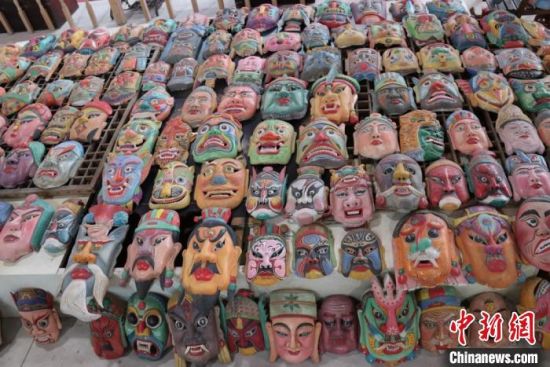 中新網(wǎng)蘭州2月20日電(閆姣) 近日,陳列于蘭州市七里河區(qū)一民俗文化館中,數(shù)量眾多、場面震撼的數(shù)千儺面具引起網(wǎng)友關(guān)注。不少網(wǎng)友調(diào)侃面具上色前后稱,“這才是無效化妝和有效化妝的強(qiáng)烈對比。”
