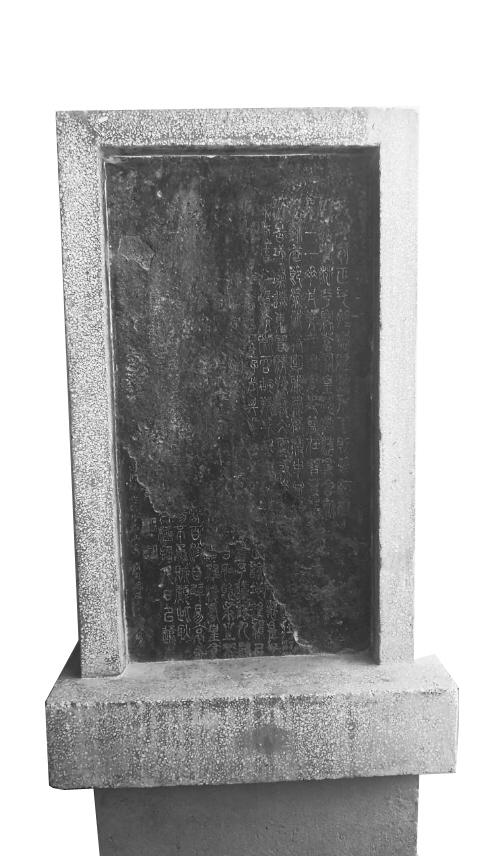和文化宮的其他幾方大碑比起來(lái),這方石碑不算大,碑面黑黑的,這是人們制作拓片時(shí)留下了墨。碑面風(fēng)化剝落得比較嚴(yán)重,只剩下右上方和左下方兩部分,風(fēng)化剝落了大部分,能看清楚開(kāi)頭和結(jié)尾。成行的字,只有最邊上的落款。