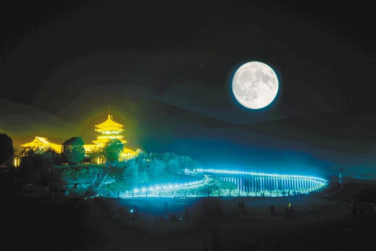中秋時(shí)節(jié),敦煌涼風(fēng)習(xí)習(xí),暑氣漸消,鳴沙山?jīng)]有酷熱,只有柔軟的沙。白天你可以在鳴沙山騎駱駝、滑沙、駕駛沙漠卡丁車、跳傘、沙浴、沙療,與鳴沙山·月牙泉來一次徹底的親密接觸,而當(dāng)夜幕降臨,沒有一聲寒暄,也用不著預(yù)告,一輪圓潤皎潔的明月緩緩從山邊升起,你可以在這里看聚沙為山,銀光閃動(dòng),滿月下的鳴沙山竟如此優(yōu)雅而迷人。