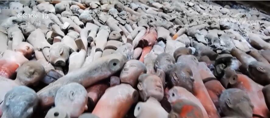 考古人員還發(fā)現(xiàn),江村大墓的外圍分布著115座外藏坑,呈放射狀分布。從2017年起,考古人員對其中8座外藏坑進行了考古發(fā)掘,出土了陶俑、鐵器、銅器、官印等大量漢代文物,經(jīng)過專家論證,最終確定該墓為漢文帝霸陵。