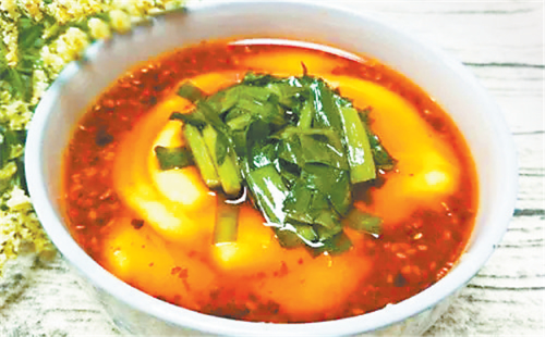 西峰的臊子面也很有地方特色,因其太辣,吃在嘴里不斷發(fā)出噓噓哨聲,故又稱“哨子面”。西峰臊子面制作獨特,吃法有趣,堪稱一絕。正如一首民歌唱到“十八省里(那個)轉一遍,好不過咱們西峰的臊子面”。西峰臊子面做工精細,制作分揉面、搟面、做湯、煮面幾個工序:“抻的面銀團團,搟的面紙一般,剁的面千條線,下到鍋里蓮花轉,撈到筷子上打秋千,盛到碗里賽牡丹。”做成的臊子面條長如線,細如絲,長而柔韌,細而不斷,噴香美味,別具風味。