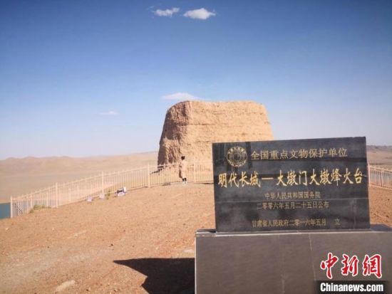 圖為位于甘肅酒泉市金塔縣境內(nèi)的全國(guó)重點(diǎn)文物保護(hù)單位——大墩門大墩明長(zhǎng)城烽燧。(資料圖) 馮志軍 攝