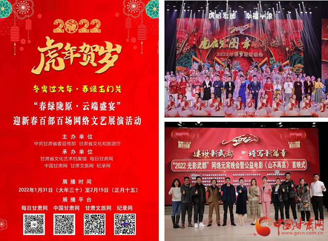 中國(guó)甘肅網(wǎng)2月22日訊 (本網(wǎng)記者 張?zhí)m琴)剛剛過(guò)去的虎年春節(jié),甘肅省文旅廳積極組織策劃開(kāi)展了“春綠隴原·云端盛宴”百部百場(chǎng)線上文藝展播,據(jù)統(tǒng)計(jì)網(wǎng)絡(luò)觀看總播放量達(dá)6788萬(wàn)人次,網(wǎng)友反響熱烈。