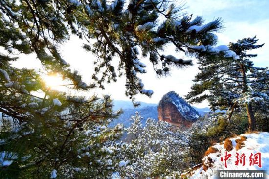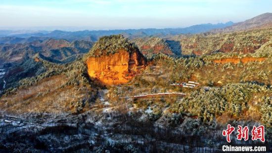麥積山風(fēng)景區(qū)是中國南北方沉積地層在地表上層的分界線,又是黃河長江兩大流域的分水嶺,雪后景色地貌獨特。周文濤 攝