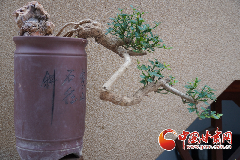 另一家店門口,擺放著造型各異的盆景。