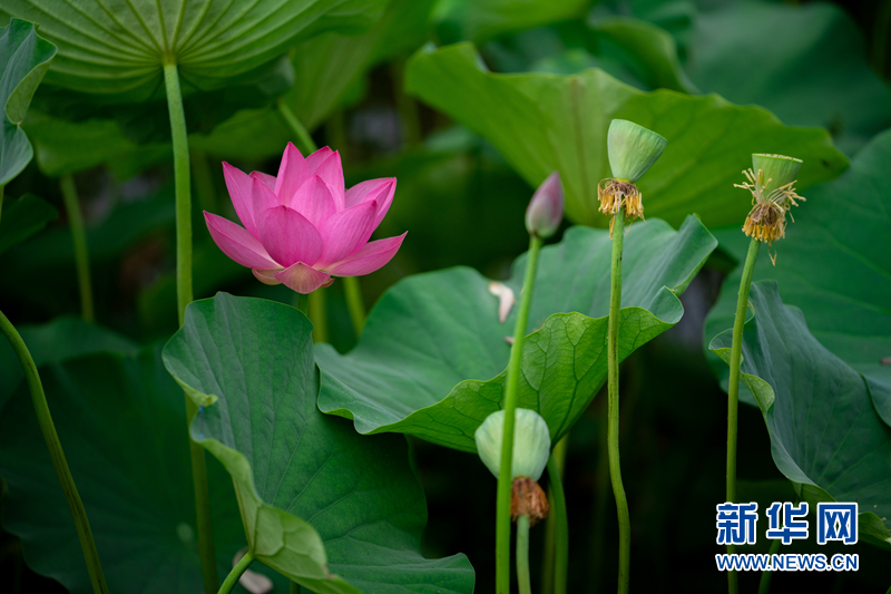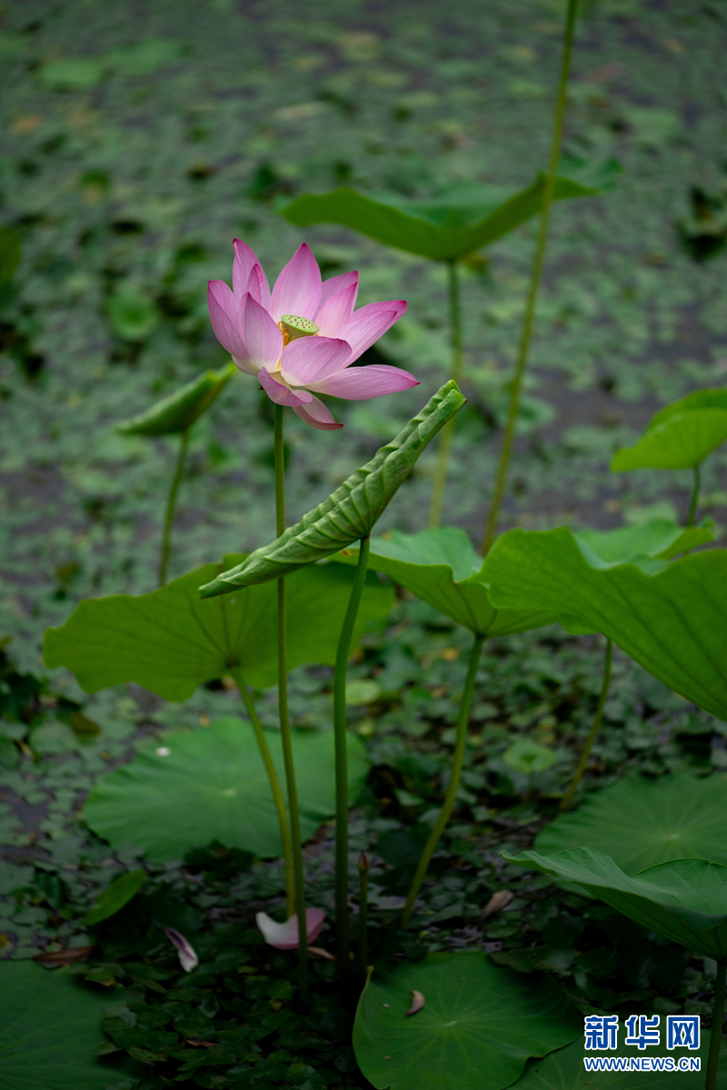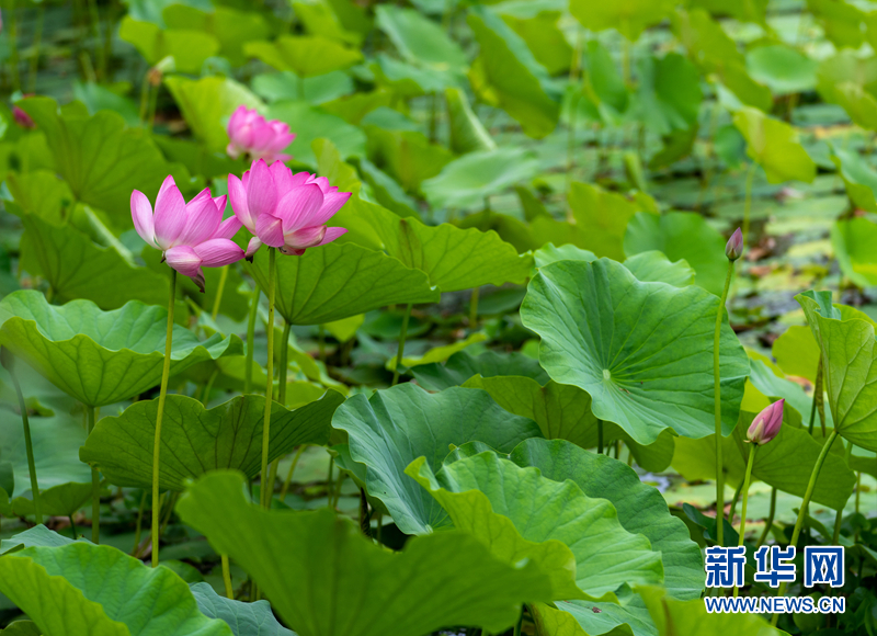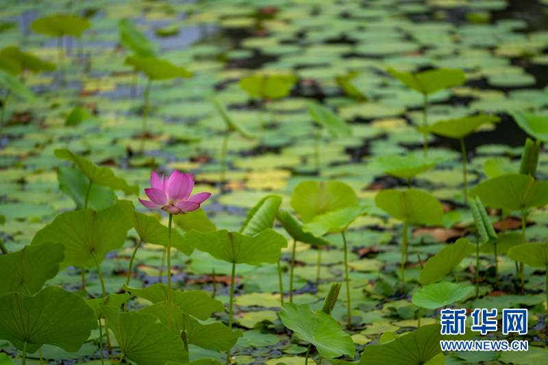 盛夏時節(jié),甘肅省隴南市成縣裴公湖里的荷花競相綻放,在炎炎夏日中帶來一絲清涼。新華網(wǎng)發(fā)(陳爭強 攝)