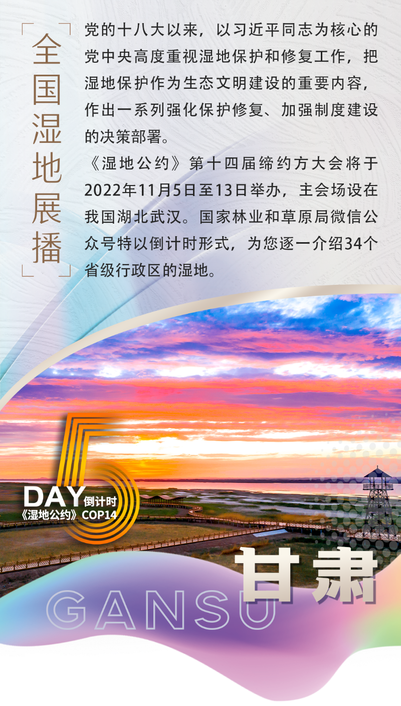 甘肅雖然地處黃土高原、青藏高原和內(nèi)蒙古高原三大高原的交匯地帶,是純粹的高原省份,但濕地資源并不匱乏,全省濕地面積占全國(guó)的5%,居第七位。