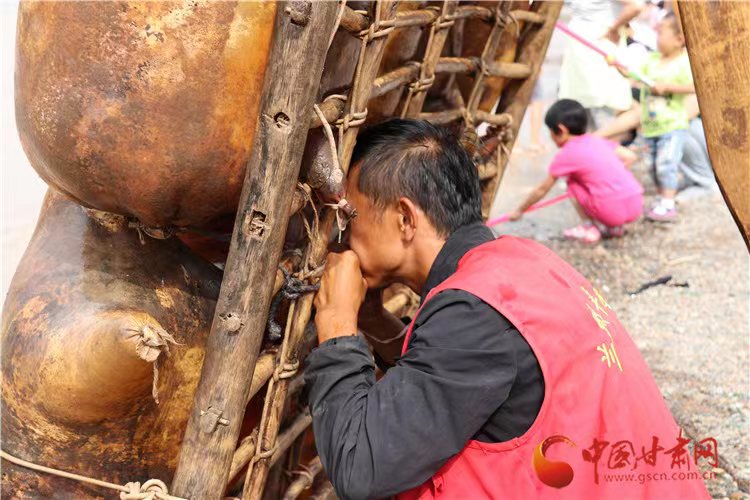 “九曲黃河十八彎,筏子起身闖河關(guān)。”羊皮筏子,舊稱“革船”,是黃河特有的風(fēng)景和古老的運輸工具。蘭州羊皮筏子距今已有300多年歷史,作為河道上的短途運輸工具,除了擺運渡河商旅和兩岸百姓外,還用于商貿(mào)販運。