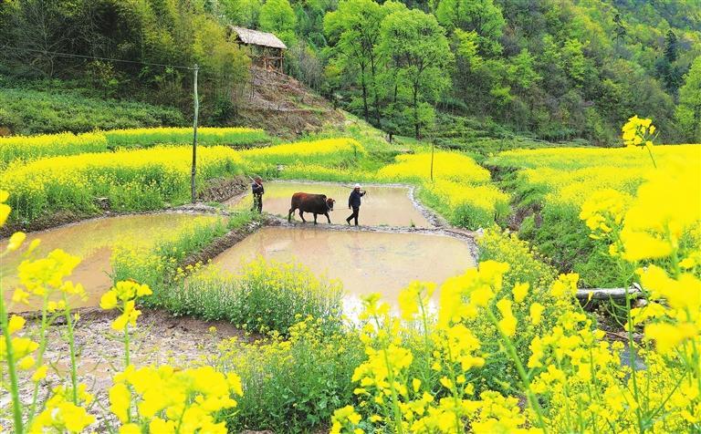 康縣陽壩鎮(zhèn)前山村村民正在翻耕水田,準(zhǔn)備培育水稻秧苗。新甘肅·甘肅日報(bào)通訊員 黃培軍