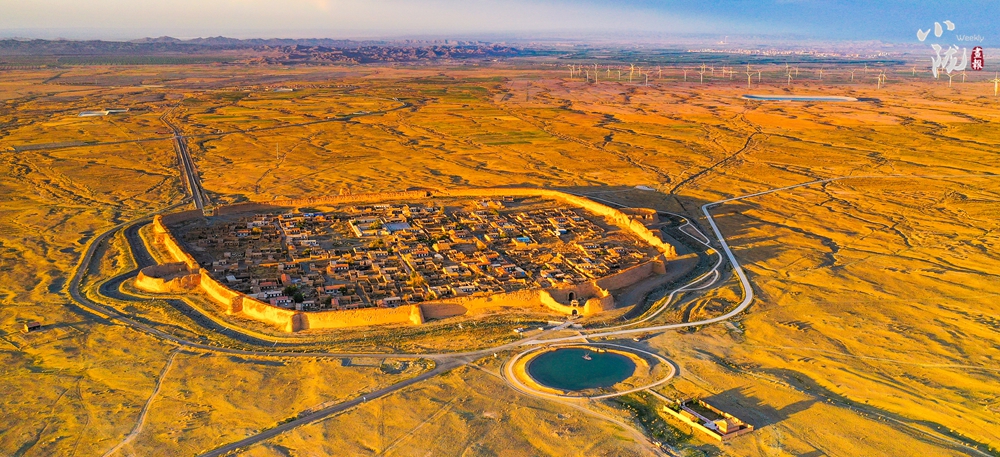 永泰古城堡墻由黃土夯筑而成,周長1717米,墻高12米,城基厚6米,占地面積318畝。從高處俯視,整座城確實狀若一只巨龜伏在戈壁灘上,維妙維肖。龜城首尾足爪俱全,將其每個部位在軍事上的應用都發(fā)揮到了極致。