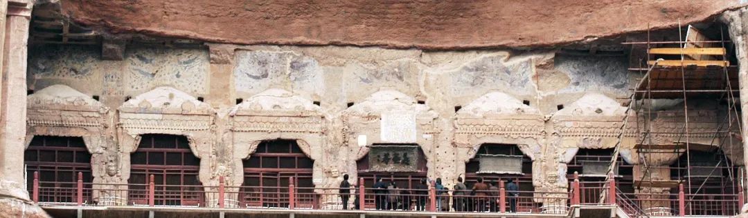 代表性窟龕主要有第4、9、12、15、22、26、27、141等窟,主要集中在東崖。仿殿堂式窟在這一時期達(dá)到頂峰,如東崖上部的第4窟,俗稱“上七佛閣”或“散花樓”,系大型廡殿頂,前廊后室、七間八柱式結(jié)構(gòu),面闊30.48米、進(jìn)深8.00米、通高16.00米,平棋、斗栱、額枋、瓦壟、正脊、鴟吻等建筑構(gòu)件一應(yīng)俱全。后室由七個裝飾華麗的帳形大龕組成,富麗堂皇。