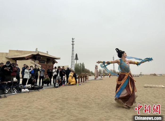 近年來(lái),敦煌市委網(wǎng)信辦以“壁畫變裝秀”“飛天舞蹈短視頻”“漫說(shuō)敦煌歷史”等形式,弘揚(yáng)敦煌文化。6月以來(lái),內(nèi)地很多敦煌舞愛(ài)好者涌向敦煌,穿上以飛天服飾為代表的各種古裝,在絲綢之路旅游網(wǎng)紅“打卡地”鳴沙山月牙泉、玉門關(guān)、陽(yáng)關(guān)等景區(qū)拍照、直播,各種不同的古裝服飾也為“大漠孤煙直”的絲路古道增添了無(wú)限色彩。