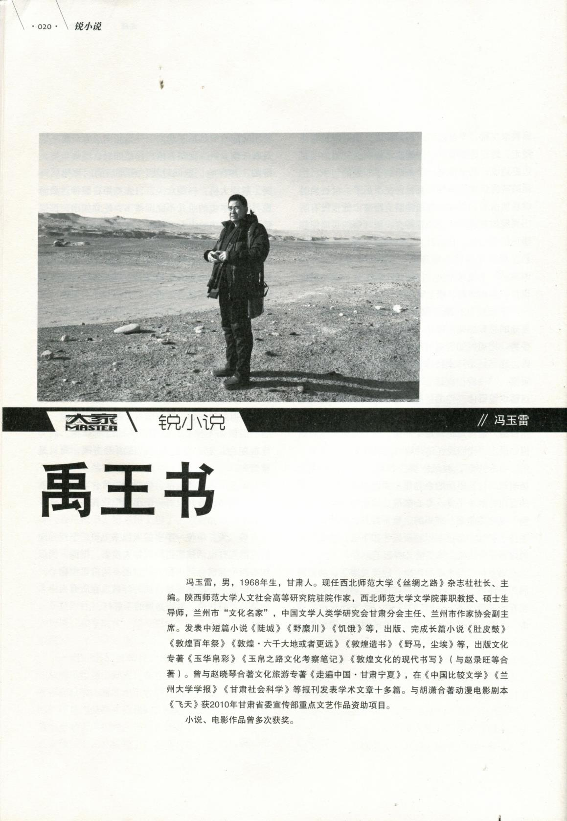 馮玉雷,畢業(yè)于陜西師范大學(xué)中文系,現(xiàn)任甘肅文化發(fā)展研究院常務(wù)副院長。一級作家。陜西師范大學(xué)人文社會科學(xué)高等研究院特聘駐院作家,上海交通大學(xué)神話學(xué)研究院學(xué)術(shù)委員,蘭州金城文化名家,中國比較文學(xué)學(xué)會文學(xué)人類學(xué)研究會理事。中國作家協(xié)會會員。馮玉雷自2006年開始研究玉玉器和玉文化,在《甘肅社會科學(xué)》《寧夏社會科學(xué)》《中國社會科學(xué)報》《中國藝術(shù)報》等報刊發(fā)表玉文化學(xué)術(shù)論文多篇。出版長篇小說《敦煌·六千大地或者更遠(yuǎn)》《敦煌遺書》《野馬,塵?!贰队硗鯐芳坝裎幕瘜V队袢A帛彩》《玉帛之路文化考察記》《條條玉路通昆侖》等。中篇小說《禹王書》入圍第八屆魯迅文學(xué)獎。榮登《大家》2020年第1期封面人物。