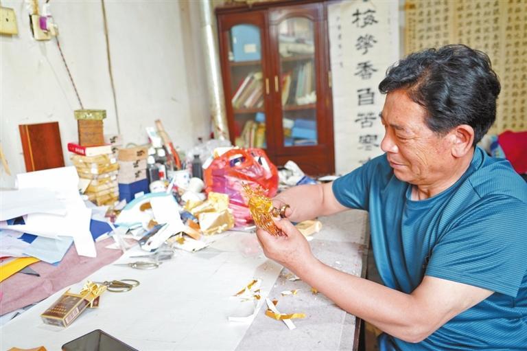 從那時起,李敏賢每天利用下午放學后和周末的時間撿拾廢煙盒,再把廢煙盒里的錫箔紙整理好,然后靜下心來剪成一幅幅活靈活現(xiàn)的梅花和喜鵲圖案。
