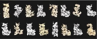 所剪的梅花枝干千姿百態(tài),變化多端,有粗有細、有長有短。梅花花朵有大有小,有的含苞未放,有的正在盛開。所剪的喜鵲也是形態(tài)多樣,有的在枝頭歡唱,有的在花間飛翔,有的竊竊私語,有的比翼雙棲,給人以喜氣又可愛的視覺效果。共分為8幀圖卷,分別為《寒梅吐艷》《喜梅報春》《一門喜事》《雙喜盈門》《喜事連連》《梅開五?!贰兜歉咄h》《喜上眉梢》。