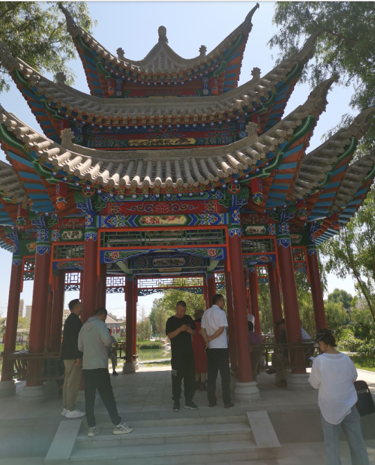 癸卯夏末,甘肅省、蘭州市著名詩人聯(lián)家一行10余人,應(yīng)邀來到著名的史前遺址——齊家文化發(fā)現(xiàn)和命名地——廣河縣,考察該縣城新建成的公園,為其命名,并撰寫楹聯(lián)、匾額,為橋、亭、榭、湖、軒等景點命名。