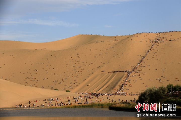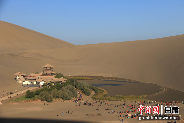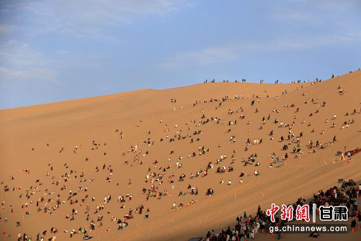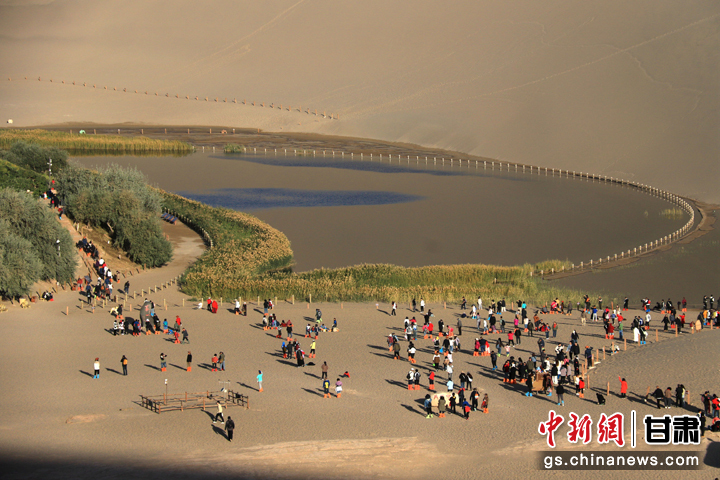 今年以來,甘肅省敦煌市旅游市場持續(xù)火熱。當地著名景點鳴沙山月牙泉在今年中秋國慶假期期間,累計接待游客首次突破300萬人次,比2019年同期增長35.5%,創(chuàng)歷史新高。(張曉亮 習剛)