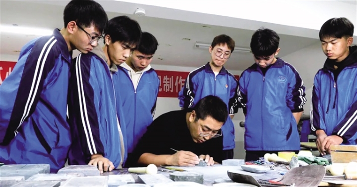 著眼于促進洮硯產(chǎn)業(yè)長期健康發(fā)展,讓絕技不絕、人才不斷,瓜州縣突出分層培育,采用“工藝美術大師—鄉(xiāng)村工匠—培育對象”梯次培養(yǎng)模式,開展“鄉(xiāng)村工匠”教學指導,為洮硯產(chǎn)業(yè)儲備好鄉(xiāng)村實用人才。通過校企合作方式,把“洮硯上的絲路文化非遺項目”引入瓜州冶金中等專業(yè)學校課堂,探索出非物質(zhì)文化遺產(chǎn)校園傳承的新模式。開展“大手牽小手,傳承洮硯非遺文化”活動,讓中小學生近距離感受洮硯雕刻中蘊含的豐富文化和精神內(nèi)涵,激發(fā)傳承優(yōu)秀民族文化的熱情。