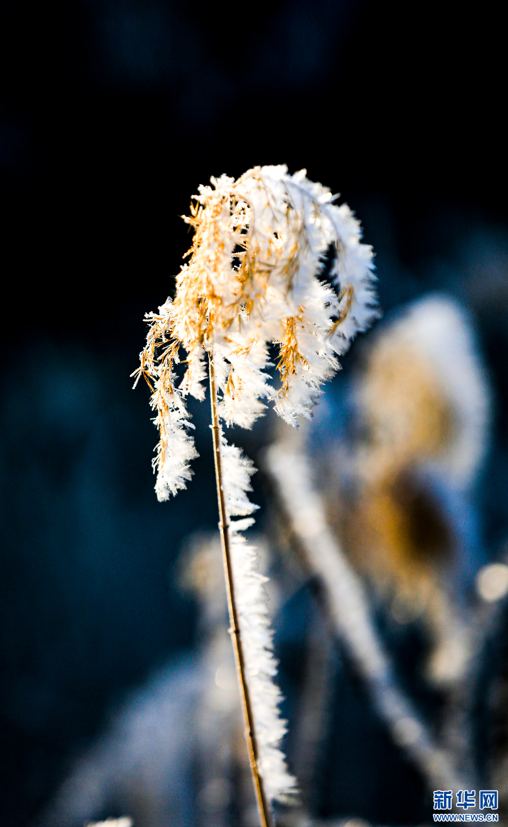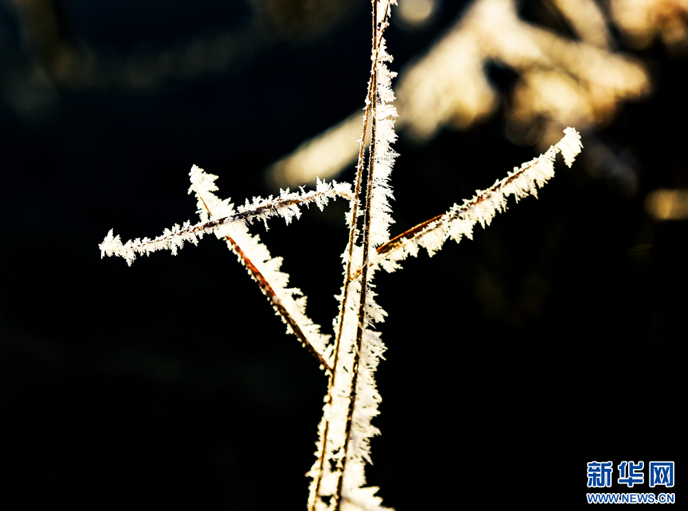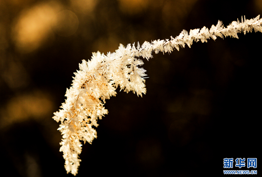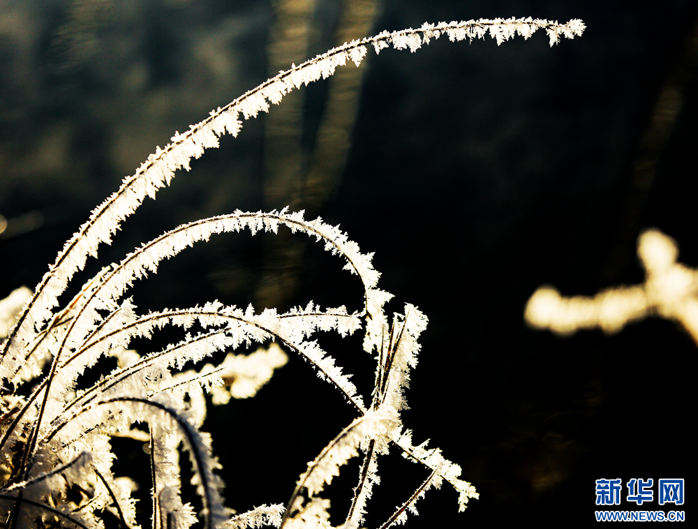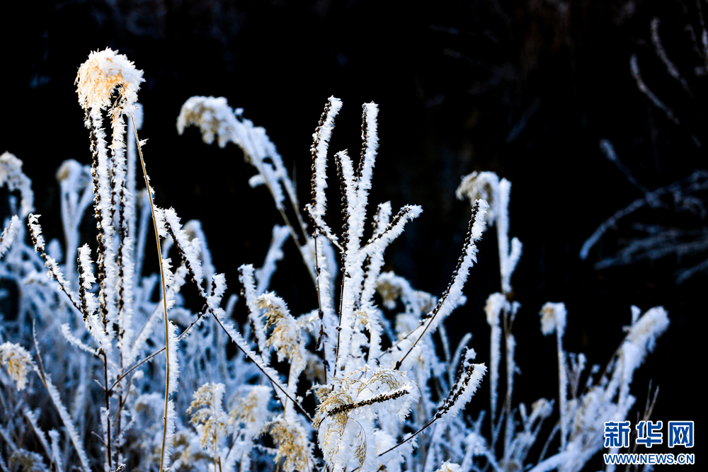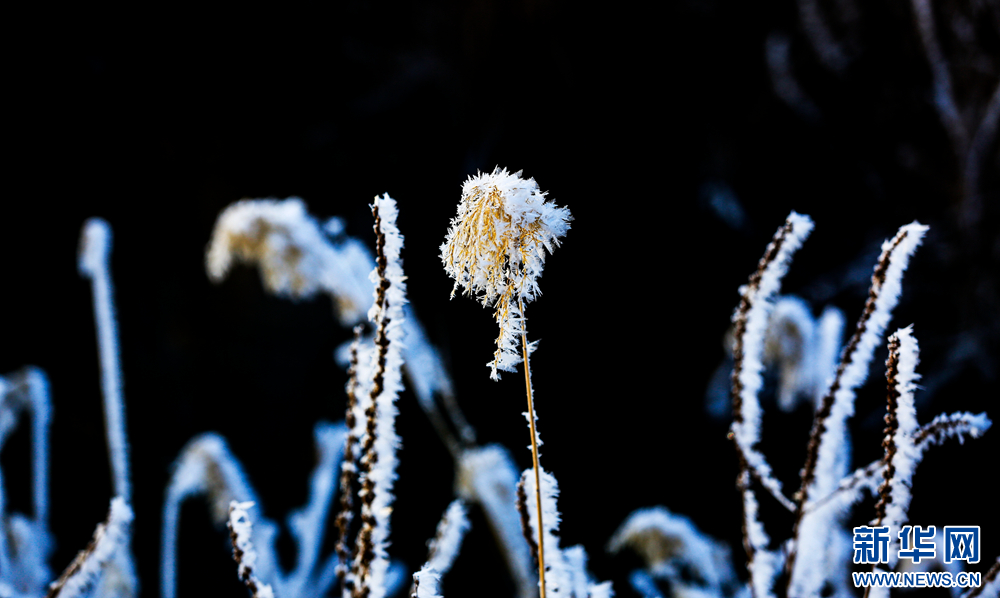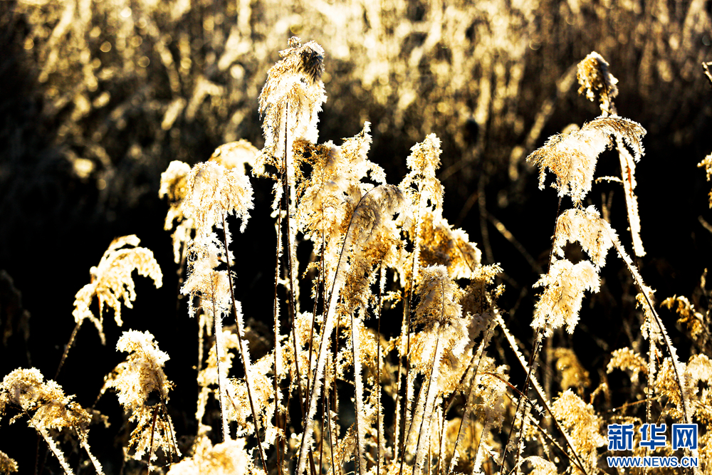 冬日里,甘肅省張掖國(guó)家濕地公園蘆葦叢中的蘆花掛滿冰花,晶瑩剔透,美不勝收。新華網(wǎng)發(fā)(陳禮 攝)