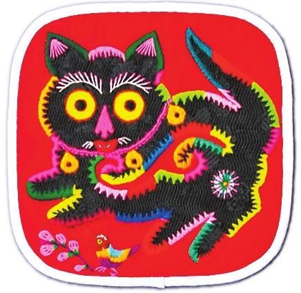 華池民間布貼畫是一種古老的民間工藝美術(shù),是隴東文化的重要組成部分。華池拼布創(chuàng)作以粗布為原料,色彩豐富鮮艷,剪貼的邊線明朗整潔,富有木刻版畫的刀木特點(diǎn)。其內(nèi)容多取材于人物、動(dòng)物、花鳥等題材,注重色彩對(duì)比,以大紅大紫的色彩,夸張化的描述,追求強(qiáng)烈的直觀效果,講究裝飾性;風(fēng)格浪漫稚拙,渾厚質(zhì)樸,氣韻生動(dòng)。