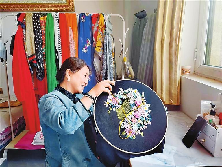 慢慢地,她的手法越來(lái)越嫻熟,繡的花樣也越來(lái)越多,現(xiàn)在隨手便可繡出形態(tài)逼真的幾十種樣式。“我小學(xué)時(shí)就跟著家人學(xué)繡花,想不到刺繡手藝還能賺錢。現(xiàn)在我想讓更多婦女通過(guò)刺繡手藝增收致富,把刺繡技藝傳承下去”。