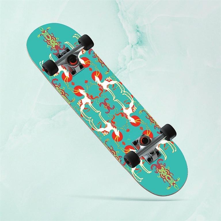 九色鹿滑板——以敦煌壁畫與極限運(yùn)動(dòng)相結(jié)合的設(shè)計(jì),不僅讓傳統(tǒng)文化玩出了新花樣,同時(shí)掀起了一場以敦煌文化為代表的傳統(tǒng)文化消費(fèi)潮。九色鹿滑板,既代表年輕人的活力和動(dòng)力,又融合了神秘敦煌的藝術(shù)風(fēng)格。以九色鹿為創(chuàng)意靈感的敦煌九色鹿系列聯(lián)名滑板,用扁平插畫風(fēng)格進(jìn)行再創(chuàng)作,用纖細(xì)柔美的線條凸顯九色鹿的優(yōu)美身姿,既保留傳統(tǒng)圖案的華麗精巧,也符合現(xiàn)代審美。