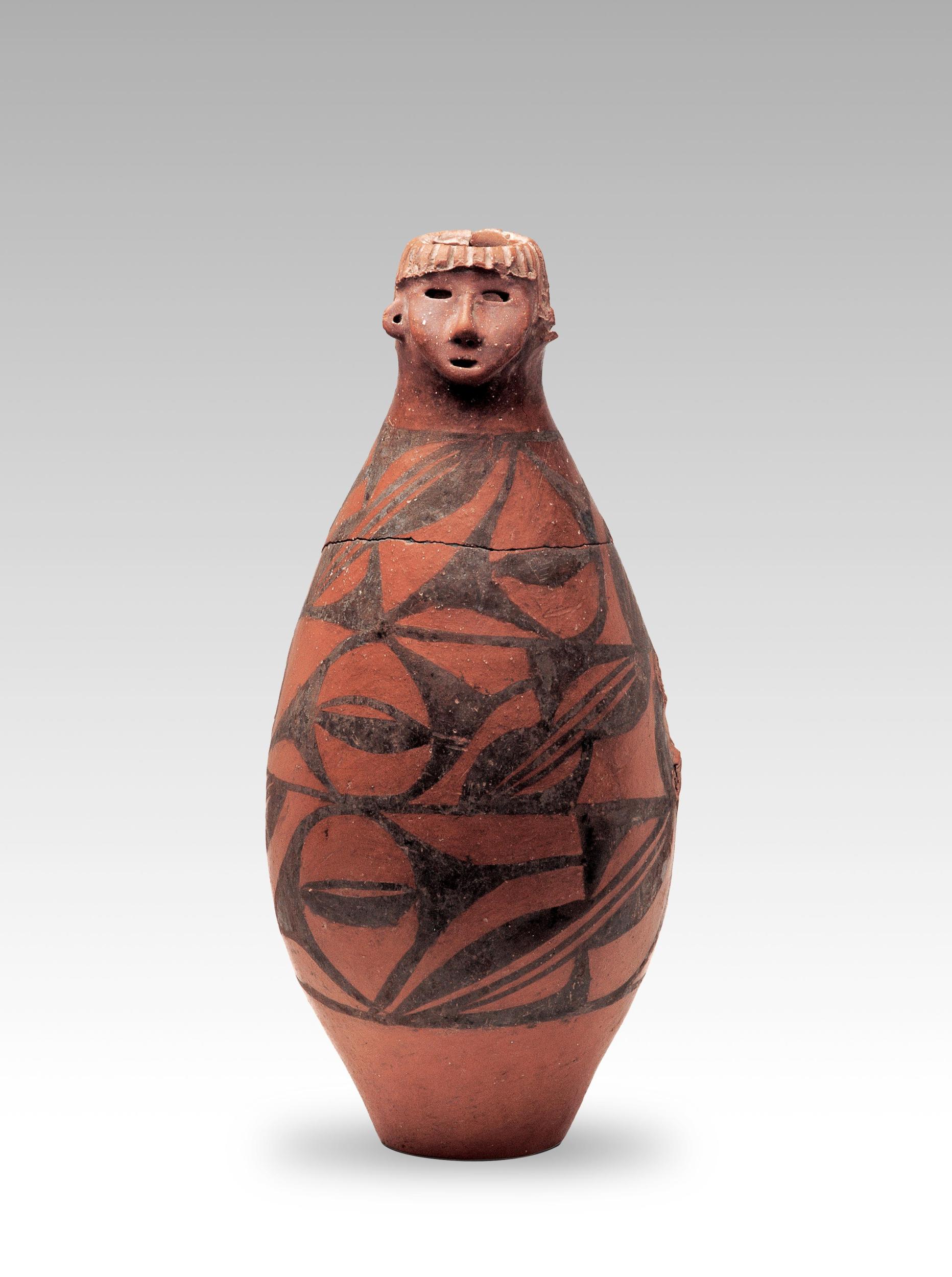這件人頭形器口彩陶瓶