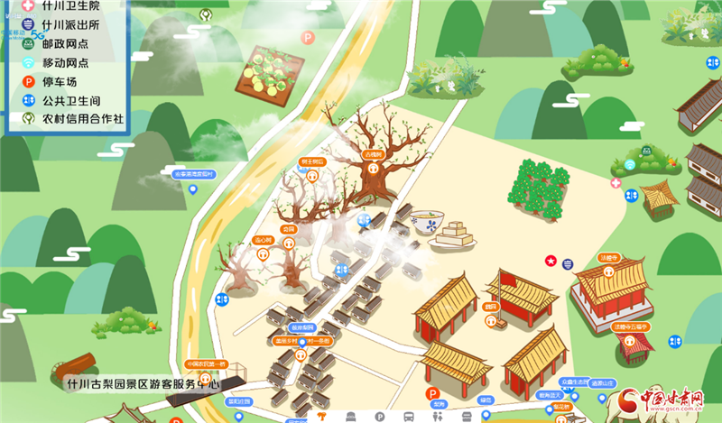 由于百年古梨園位于村落之間,占地面積大且道路蜿蜒曲折,許多外地游客在這里總會因為路況不熟或者看不懂紙質(zhì)地圖而走很多冤枉路。針對游客的這一痛點,中國移動甘肅公司蘭州分公司依托云網(wǎng)融合和數(shù)字化服務優(yōu)勢,為什川梨園及周邊景區(qū)量身打造了5G+VR手繪地圖智慧導覽服務,根據(jù)當?shù)仫L格特色定制手繪地圖,展示當?shù)鼐包c及場所地標名稱,并可結合語音講解充分展現(xiàn)歷史背景、文物故事、人物典故等景區(qū)相關信息,真正讓每一位游客感受到“一部手機游梨園”的便利。