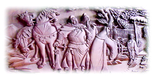 因著榜沙河的滋潤,“民武”木雕擺件大多采用本地質(zhì)地細密堅韌、不易變形的梨木,所刻作品溫潤而不浮躁,沉穩(wěn)而不輕浮。最具特色的是,在題材選取上極富傳統(tǒng)文人氣息,尤其是施彩擺件,具有較高的藝術水準。這些千姿百態(tài)的圖案,將生活場景和神話故事有機融合在一起,高大悠遠、古拙秀雅,達到了“變形不失真,夸張亦傳神”的藝術境界。