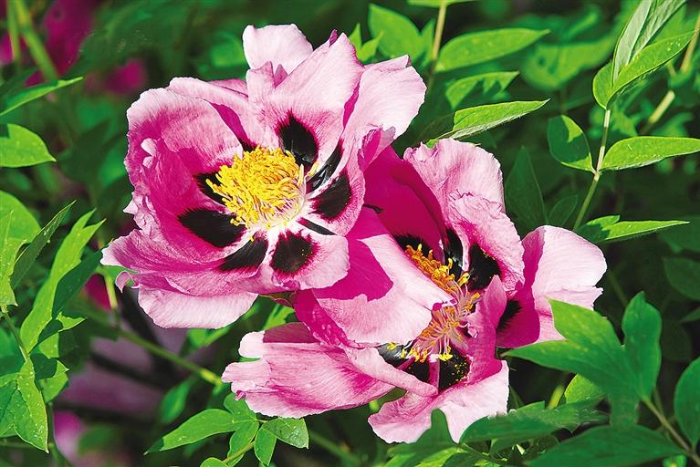 小城萬千的牡丹,紫斑牡丹是魁首。生長在臨夏大地上的紫斑牡丹,與菏澤牡丹、中原牡丹涇渭分明,那絢麗的花色,花瓣基部的紅、紫、黑三色組成的放射斑,獨樹一幟,熠熠生輝。因此,作為耀眼的城市名片,成為標簽,恰如其分地貼在臨夏的詞典上。因而,當提及臨夏,人們就會想到牡丹,就有身處國色天香的佳境和美感。