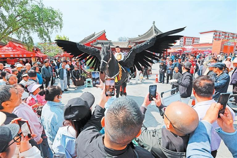 伏羲廟廣場(chǎng)吸引游客打卡拍照。