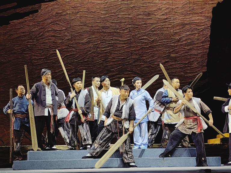 中國(guó)甘肅網(wǎng)5月21日訊 據(jù)蘭州晚報(bào)報(bào)道(記者 高宏梅 文/圖)酣暢淋漓的“花兒”唱出了黃河兒女的人間悲喜,韻味濃厚的“嘛簧”一唱眾幫,隴劇戲曲張力無(wú)限,“羊皮筏子賽軍艦”的熱血故事成就走心之作……5月19日晚,國(guó)家藝術(shù)基金資助項(xiàng)目原創(chuàng)隴劇《大河?xùn)|流》在黃河劇院成功首演,隴劇“梅花獎(jiǎng)”甘當(dāng)配角,“青春力量”首挑大梁,出新出彩的優(yōu)異表現(xiàn)贏得滿堂彩。
