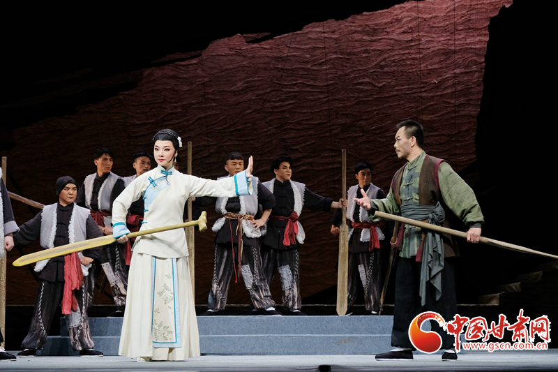 在唱腔設(shè)計上,該劇既有傳統(tǒng)的保留,也有創(chuàng)新的嘗試。在隴東老道情的基礎(chǔ)上,通過音樂和配器的創(chuàng)新,提升了音樂的張力和表現(xiàn)力?,F(xiàn)場演出采用了民族管弦樂隊伴奏,使音樂更具交響性,更加豐富多彩,這也是該劇音樂方面的最大創(chuàng)新?! ?/p>