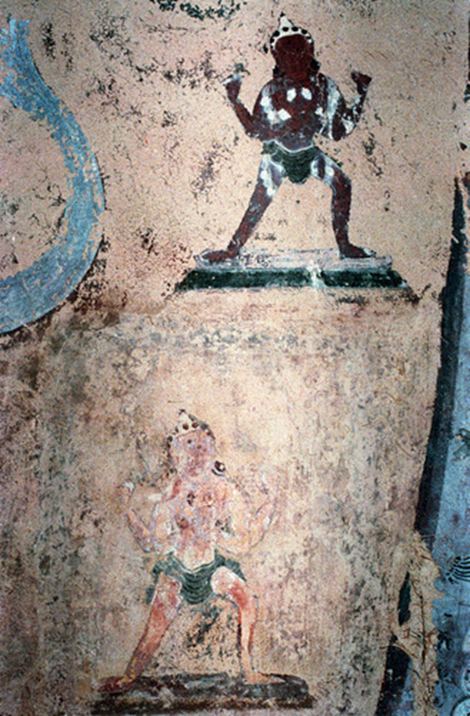 莫高窟465洞窟是從未開放過(guò)的重要洞窟之一。其內(nèi)主要珍藏有關(guān)佛教密宗的壁畫。它們屬元代(公元1206—1368年)壁畫之精華,具有很高的藝術(shù)價(jià)值。圖為修復(fù)后的被盜壁畫之二明王像(下)。新華社記者李生才攝(1989年10月7日發(fā))