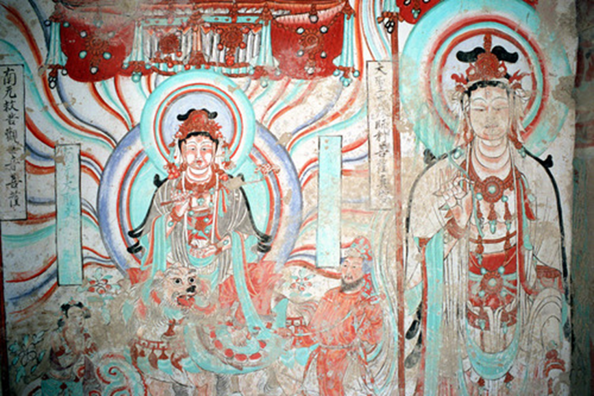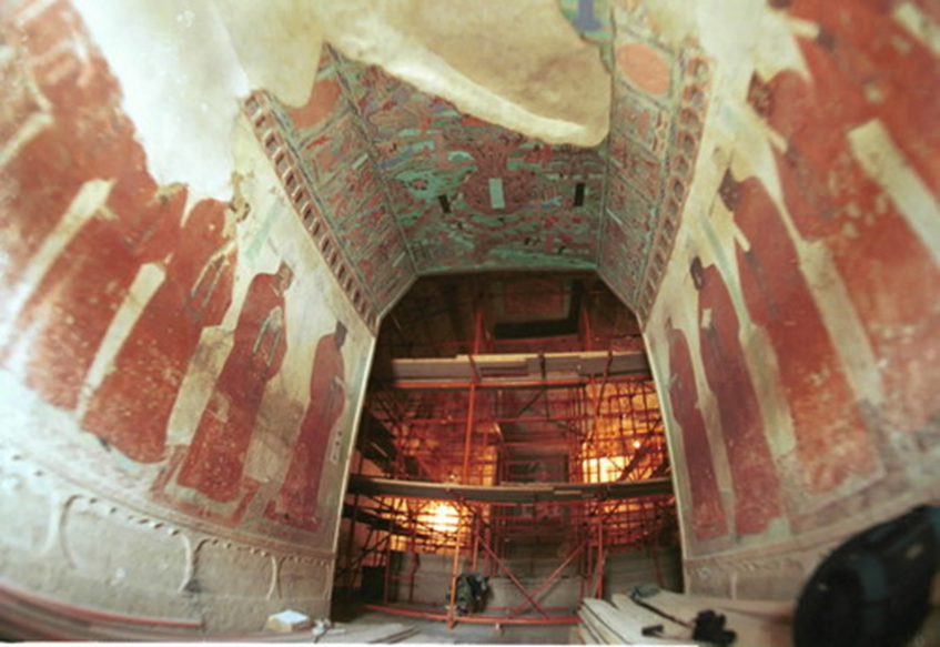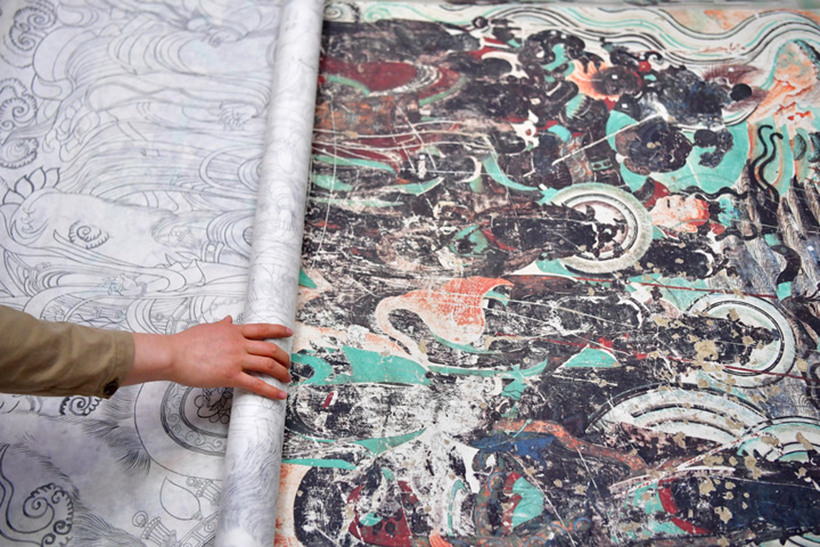 1989年年初,中國(guó)敦煌莫高窟465號(hào)窟內(nèi)的五處元代壁畫被盜。破案后,敦煌研究院立即組織有關(guān)專家將這些支離破碎的壁畫拼接粘合,以高超的技藝復(fù)原,然后按照?qǐng)D片檔案資料進(jìn)行描繪,使它們基本上恢復(fù)了被盜之前的本來(lái)面貌。