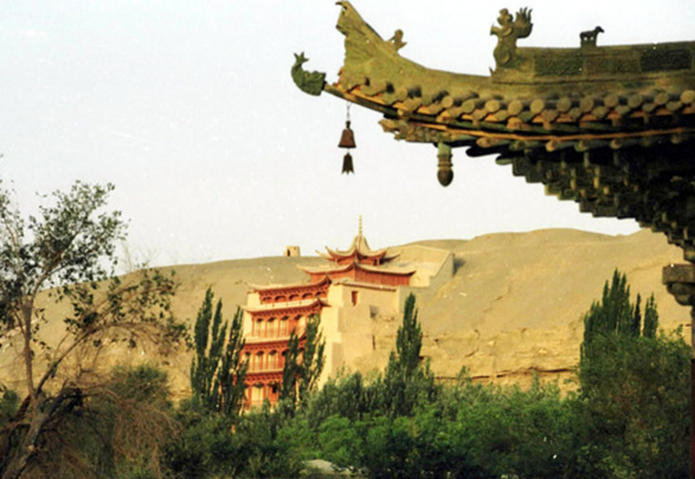 從20世紀(jì)70年代末開始,大量先進(jìn)科技不斷被引入敦煌石窟保護(hù)。新技術(shù)、新材料、新手段的不斷運(yùn)用,豐富了敦煌遺產(chǎn)的保護(hù)技術(shù)和保護(hù)手段,有效改變了石窟內(nèi)部及其環(huán)境的保護(hù)狀況,使敦煌遺產(chǎn)的保護(hù)工作從原來(lái)的搶救性保護(hù),過(guò)渡到了科學(xué)保護(hù)階段。圖為透過(guò)敦煌莫高窟前的牌樓一角望去,敦煌莫高窟標(biāo)志性建筑九層樓依舊雄偉壯觀。新華社記者梁強(qiáng)攝(2004年10月25日發(fā))
