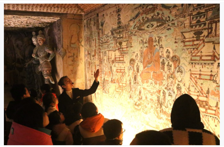 2024年,敦煌市依托當(dāng)?shù)刎S富的人文遺跡和自然景觀,大力發(fā)展文化研學(xué),建成莫高學(xué)堂、鳴沙書院等16個(gè)研學(xué)基地,推出壁畫臨摹、漢簡(jiǎn)學(xué)堂等獨(dú)具敦煌特色的研學(xué)產(chǎn)品,讓游客和學(xué)生在參觀的同時(shí)進(jìn)一步體驗(yàn)敦煌文化的魅力。 據(jù)了解,敦煌市已推出冬春旅游優(yōu)惠政策,對(duì)大中小學(xué)生免市屬景區(qū)門票,莫高窟對(duì)研學(xué)團(tuán)隊(duì)開放洞窟由8個(gè)增至13個(gè),并配備資深講解員講解。