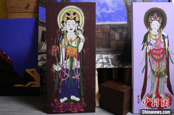 北京外國語大學(xué)藝術(shù)研究院院長寧強(qiáng)以敦煌莫高窟壁畫為靈感創(chuàng)作的繪畫作品?!⌒煅┈?nbsp;攝