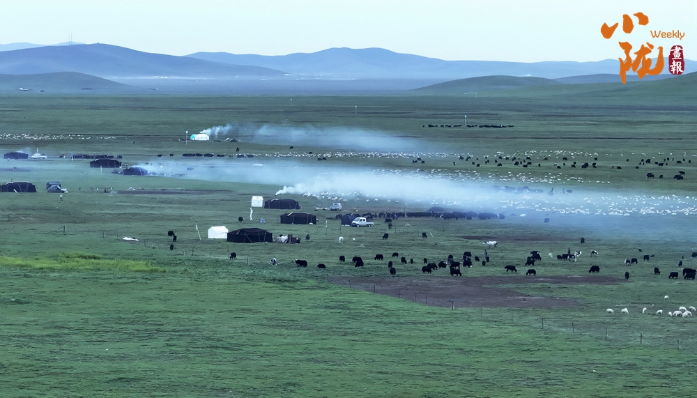 湛藍(lán)的天空,翠綠的草原,牛羊遍野,帳篷點(diǎn)綴在草地上......放眼望去,一切都是那么美好,一切都是那么靜謐,一切都是那么祥和。