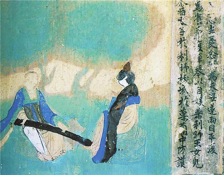 在莫高窟第321窟壁畫中有一幅“青年男女圖”:畫面中一對(duì)戀人穿著“情侶衫”,女子的上衣與男子的長(zhǎng)袍是同樣的淡綠色。他們兩人身材高挑、情意綿綿,女子右手前指,含情脈脈望向男子,男子喜不自禁,右手緊握著女子長(zhǎng)長(zhǎng)的左邊衣袖。在莫高窟第85窟壁畫中有一幅“樹下彈琴圖”:畫面描摹的是波羅奈國(guó)太子善友與作惡多端的弟弟惡友的故事。善友被弟弟設(shè)計(jì)陷害,雙目失明,悲憤不已的他只能在樹下彈琴來(lái)排遣不幸,美麗的利師跋國(guó)公主被他的琴聲吸引感動(dòng),不顧一切與他結(jié)為夫妻。后來(lái)在公主的幫助下,善友太子奪回了屬于自己的一切。畫面里的善友與公主二人神色寧?kù)o,祥和雋永。在榆林窟第38窟壁畫中有一幅“同入青廬圖”:畫面上一對(duì)男女衣著華美,男子一襲赭紅長(zhǎng)衫,喜氣洋洋;女子著套色衣裙,衣袂飄飄,緊緊依偎在愛人身邊,正可謂“金風(fēng)玉露一相逢,便勝卻人間無(wú)數(shù)”。