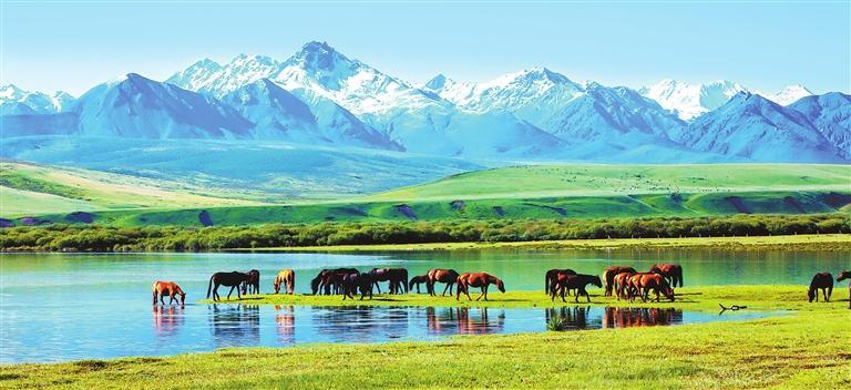 盛夏時節(jié),祁連山北麓的萬畝草場上,水草豐美似玉毯,駿馬颯沓如流星。