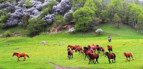 關(guān)山在很長一段時間一直是中國重要的牧馬之地。據(jù)史書記載,大將衛(wèi)青、霍去病北征匈奴,曾從關(guān)山征集戰(zhàn)馬14萬匹,足見當(dāng)時這里牧馬業(yè)的繁盛。然而現(xiàn)在,馬的蹤跡只是景區(qū)的點綴,要想看到萬馬奔騰的場面,要去河西走廊的山丹軍馬場。