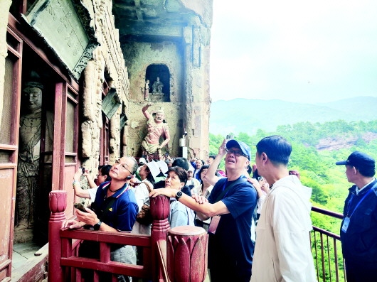 活動(dòng)當(dāng)天,來(lái)自臺(tái)灣文博領(lǐng)域的專家學(xué)者一行,懷著對(duì)古老文化的敬仰與憧憬,在麥積山石窟感受石窟藝術(shù)的獨(dú)特魅力、在天水工業(yè)博物館探尋工業(yè)發(fā)展的歷史脈絡(luò)、在伏羲廟體悟中華始祖文化的博大精深、在天水市博物館領(lǐng)略豐富的歷史文物承載的歲月記憶、在天水古城品味古色古香的韻味與風(fēng)情……一系列豐富多彩的文化交流活動(dòng),讓他們近距離感受到了古城天水的風(fēng)景名勝、文化遺產(chǎn)保護(hù)傳承及山川風(fēng)物。