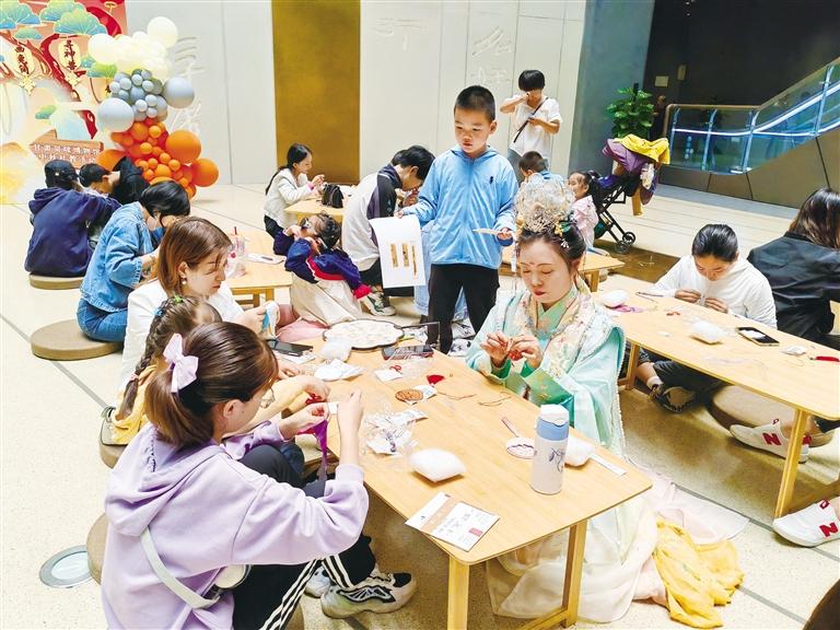 活動現(xiàn)場,甘肅簡牘博物館根據(jù)中秋嫦娥的故事,結(jié)合館藏文物“兔子木簡”和簡牘博物館文創(chuàng)玩偶“簡龍”的原型,分別設(shè)置了縫制月餅香囊、繪兔簡、尋找神獸三道關(guān)卡,通過完成任務(wù)獲得“仙丹碎片”,最終點亮宮燈,幫助嫦娥重回廣寒宮。新穎獨特的活動,吸引了不少市民參加。
