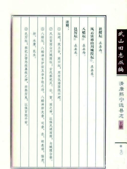 武山舊志叢編《明萬(wàn)歷寧遠(yuǎn)志·文廟》殘本記載:“風(fēng)云雷雨壇,在縣城東。”