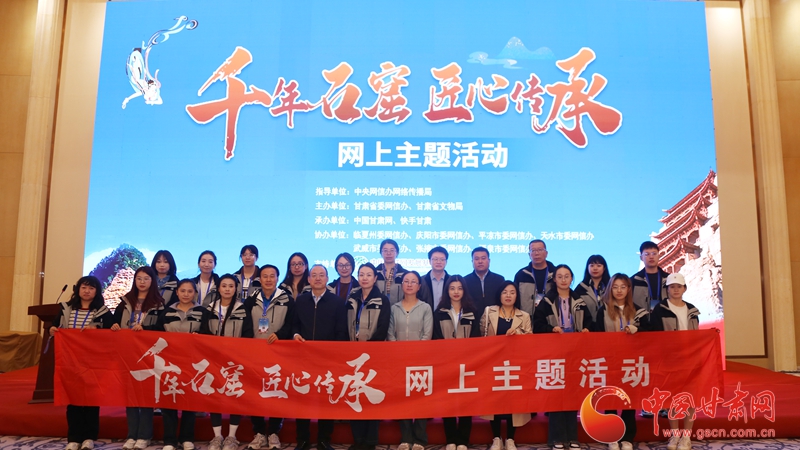 “千年石窟 匠心傳承”網(wǎng)上主題活動(dòng)由中央網(wǎng)信辦網(wǎng)絡(luò)傳播局指導(dǎo),甘肅省委網(wǎng)信辦、甘肅省文物局主辦,中國(guó)甘肅網(wǎng)、快手甘肅承辦,臨夏州委網(wǎng)信辦、慶陽(yáng)市委網(wǎng)信辦、平?jīng)鍪形W(wǎng)信辦、天水市委網(wǎng)信辦、武威市委網(wǎng)信辦、張掖市委網(wǎng)信辦、酒泉市委網(wǎng)信辦協(xié)辦,中國(guó)互聯(lián)網(wǎng)發(fā)展基金會(huì)、中國(guó)敦煌石窟保護(hù)研究基金會(huì)、甘肅銀行支持,旨在深入貫徹落實(shí)習(xí)近平文化思想,勇?lián)聲r(shí)代文化使命,讓人們?cè)?ldquo;活”起來(lái)的石窟藝術(shù)中體會(huì)文化力量,不斷筑牢文化自信根基。